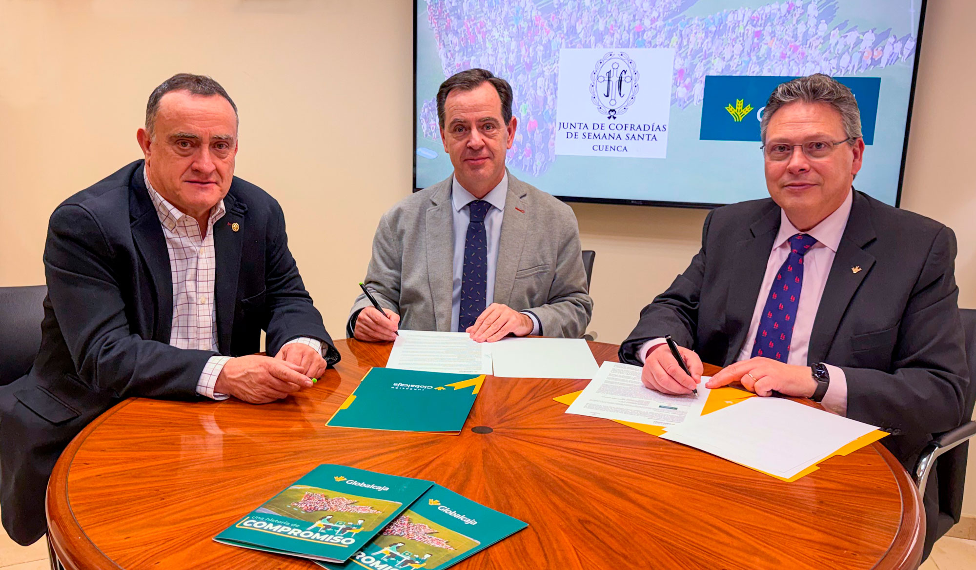 El acuerdo ha sido firmado por el representante de la Fundación Globalcaja, Eliseo Quejigo, y el presidente de la Junta de Cofradías, Jorge Sánchez Albendea, consolidando una línea de trabajo conjunto orientada a difundir el patrimonio cultural de Cuenca.